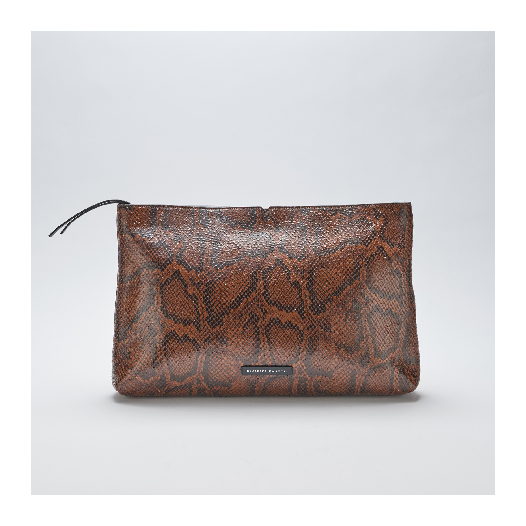 GIUSEPPE ZANOTTI. Cartera en piel símil serpiente de tonalidad marrón y ocre con cierre de cremallera. Nueva a estrenar.