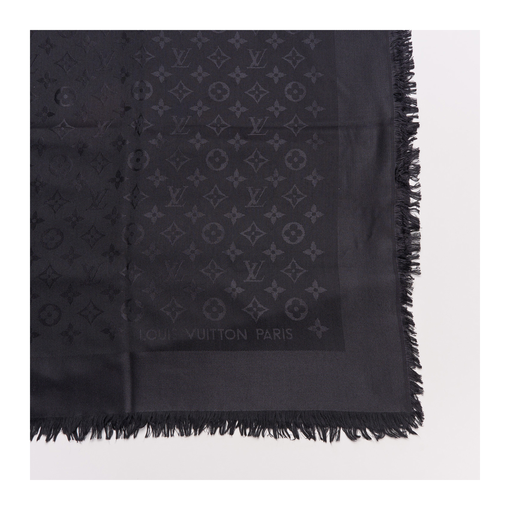 LOUIS VUITTON. Chal modelo «Shine» de tonalidad negra en mezcla de seda y lana con estampado Monogram. En perfecto estado.