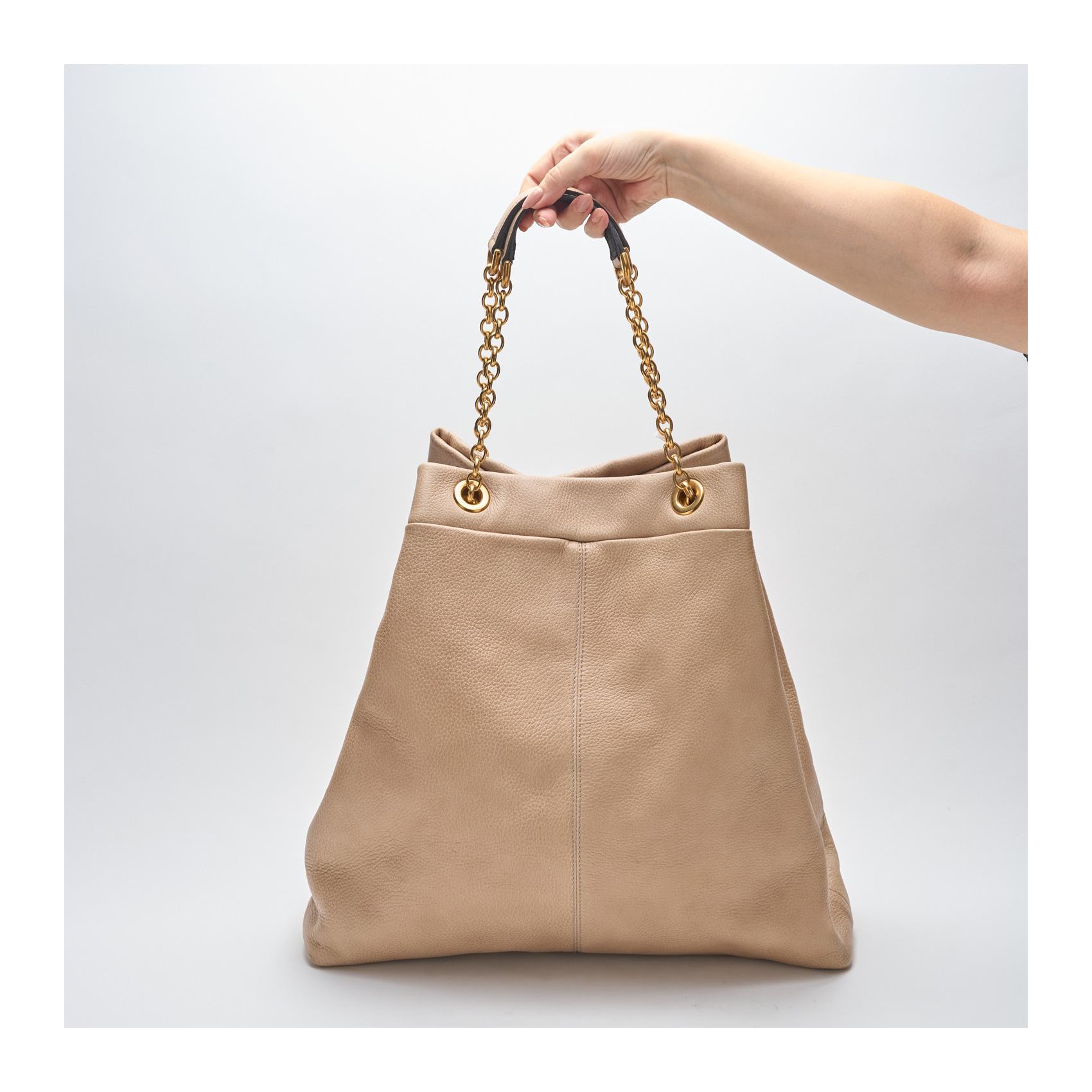 DOLCE & GABBANA. Bolso de hombro en piel de tonalidad beige con asas en metal dorado. En buen estado. Presentan desgastes dos esquinas inferiores y una parte de la cadena.