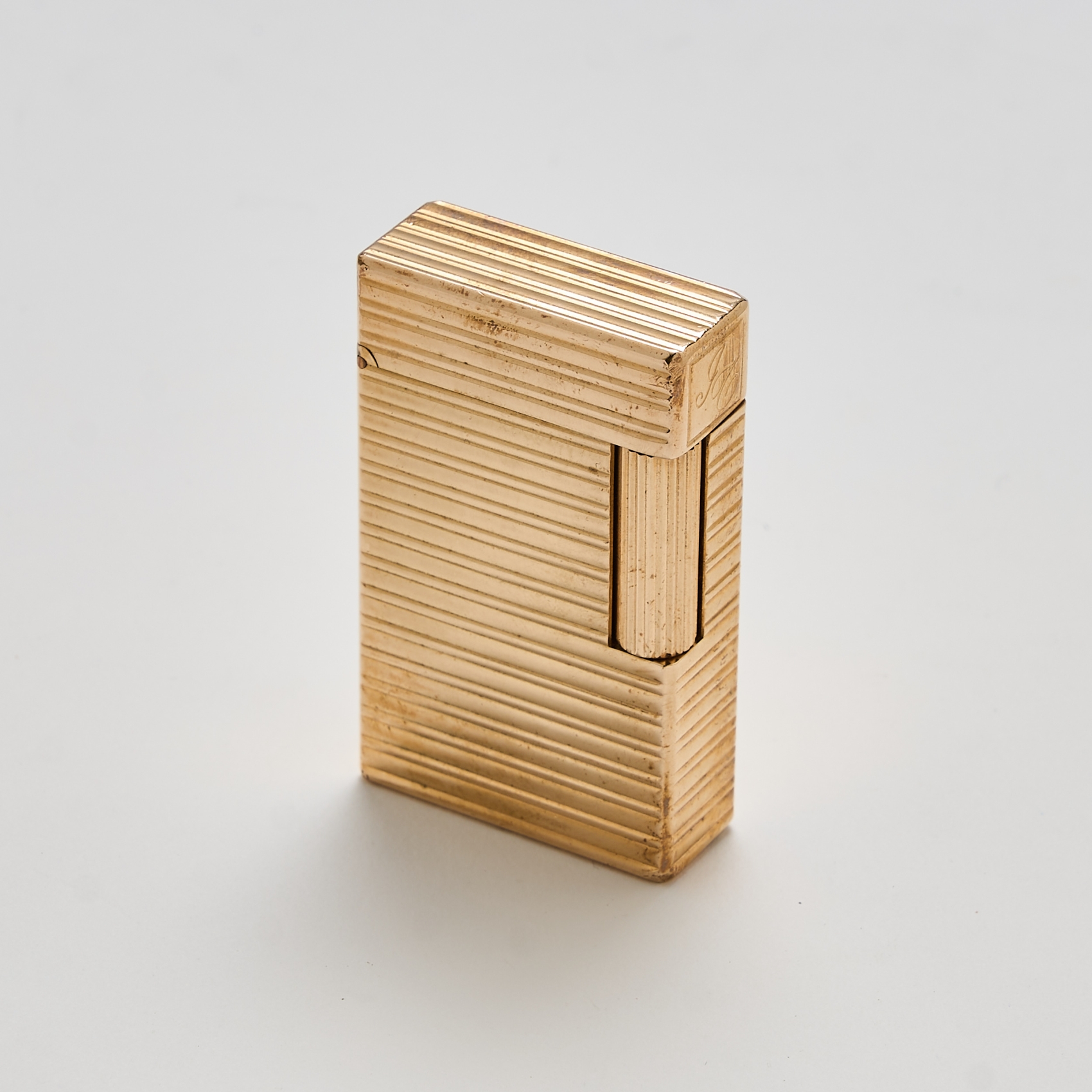 S.T. DUPONT. Encendedor en plaqué oro con decoración de líneas horizontales.