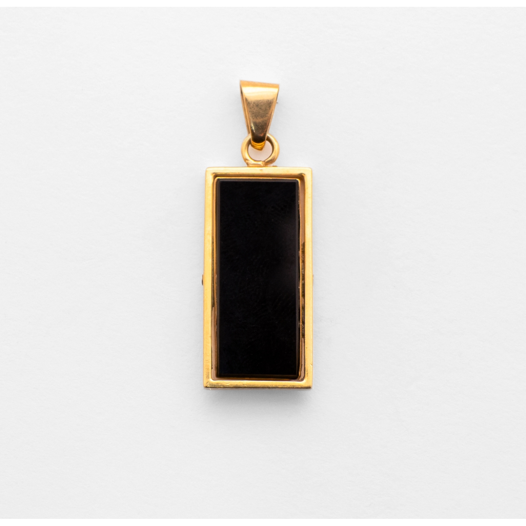 Colgante diseño rectangular en oro con aplicación abatible de ónix de 2,1 x 0,9 cm.