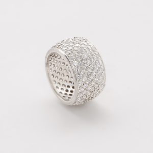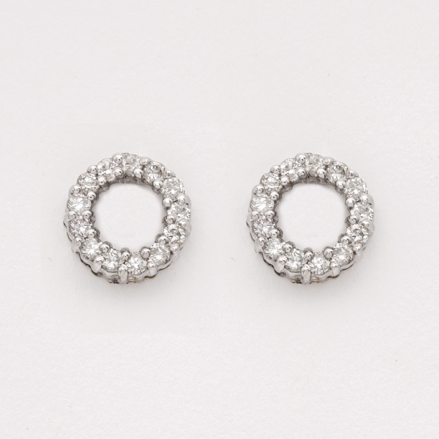 Pendientes diseño círculo calado en oro blanco con diamantes talla brillante engastados en garras.