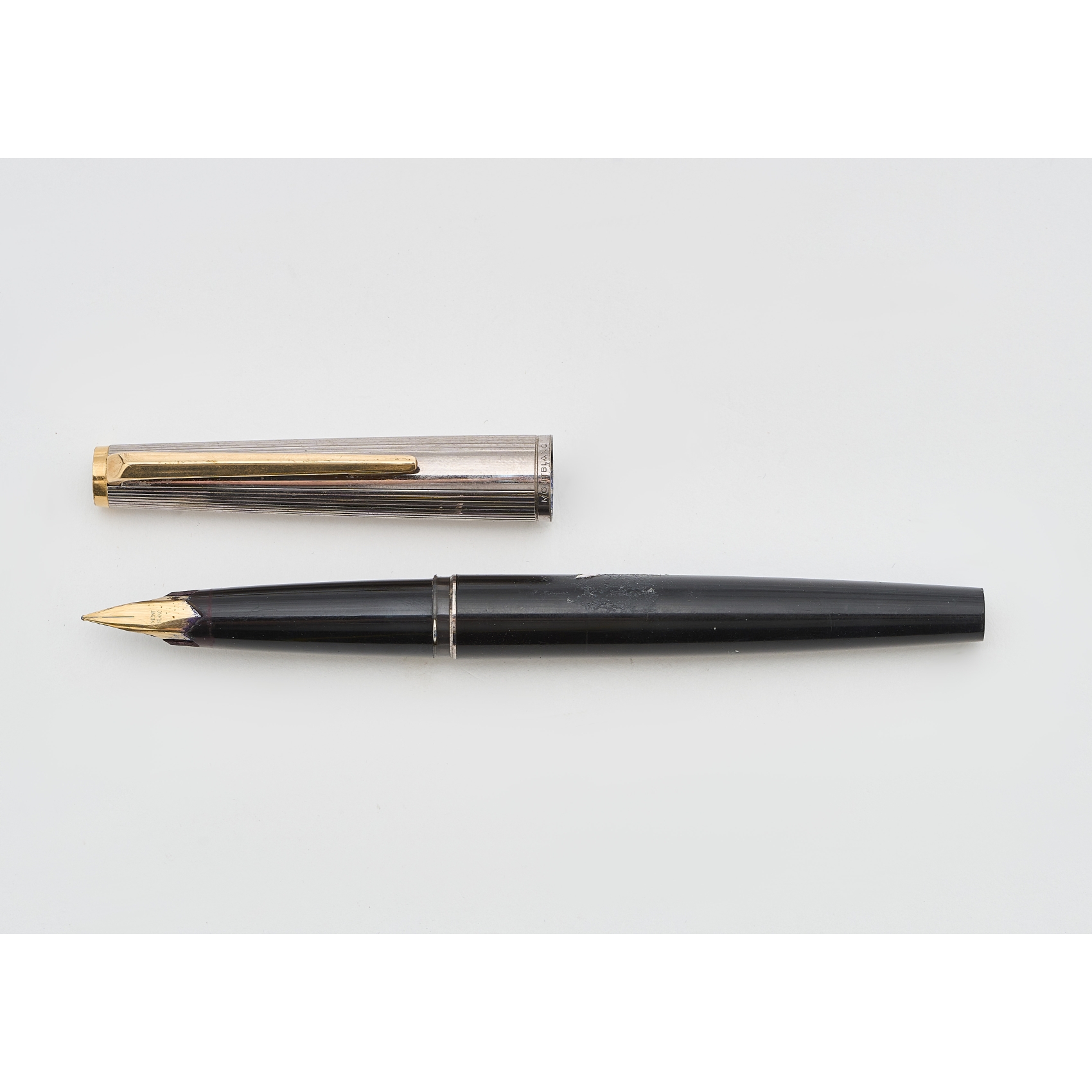 MONTBLANC «Classic». Estilográfica en resina negra y acero con decoración estriada y detalles en plaqué oro, c.1970. Sistema de carga por cartucho. Estimación:150 – 170€