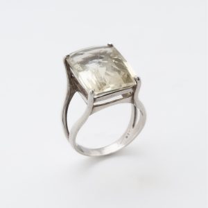 Sortija en plata dorada con amatistas talla carré y circonitas.