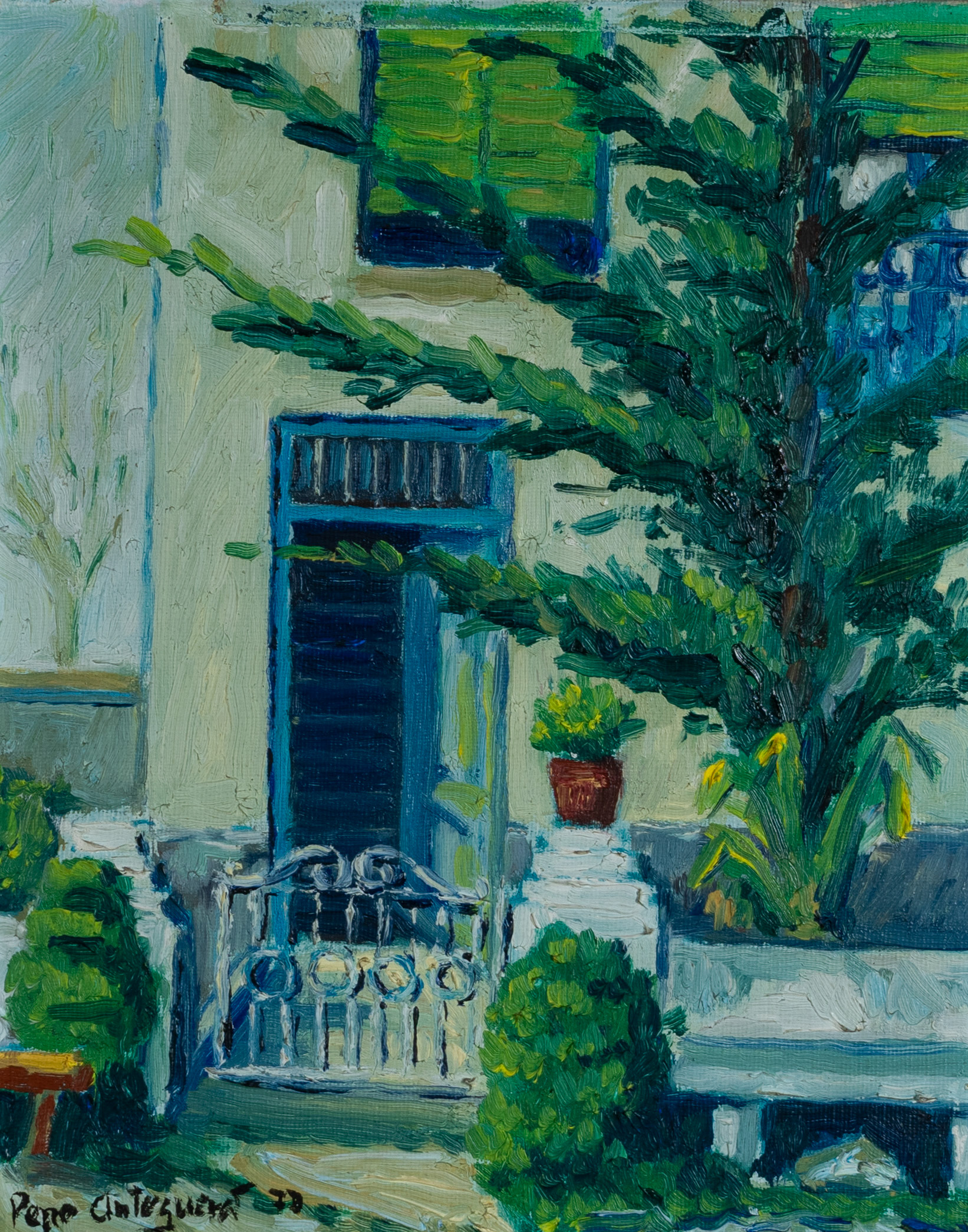 Puerta al jardín y Ventana con macetas.