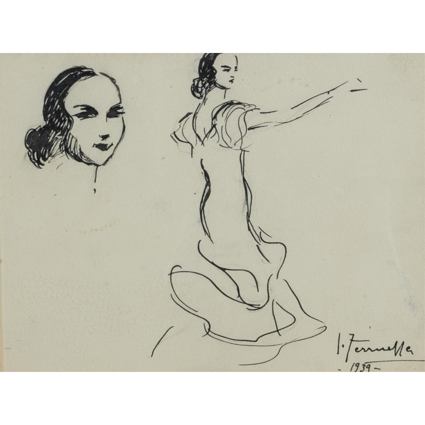 Dibujo a tinta y plumilla sobre papel. Firmado y fechado en 1939.
