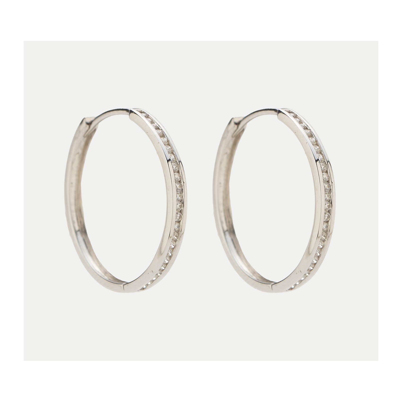 Pendientes criolla en oro blanco con frente de diamantes talla brillante.