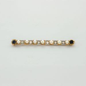 Collar de perlas cultivadas de 5 y 5,5 mm. con cierre calado en oro y plata, olivina central talla carré de 4 x 4 mm. y diamantes talla rosa.