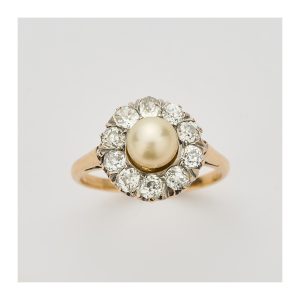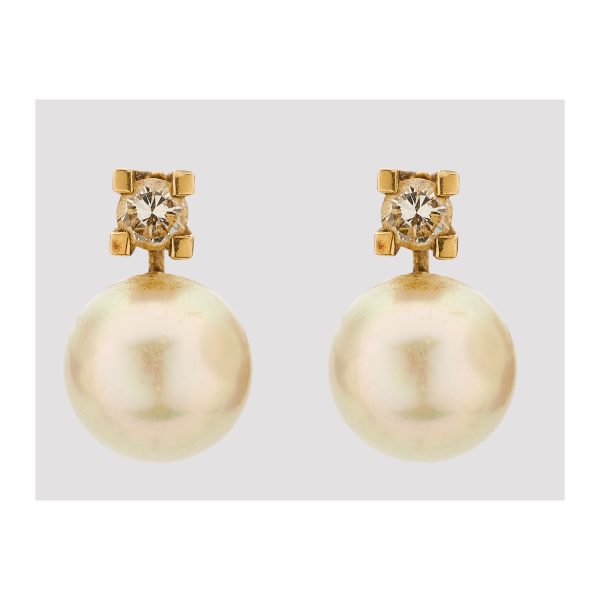 Pendientes tu y yo en oro blanco con diamante talla brillante engastado en garras y perla cultivada de 9 mm.