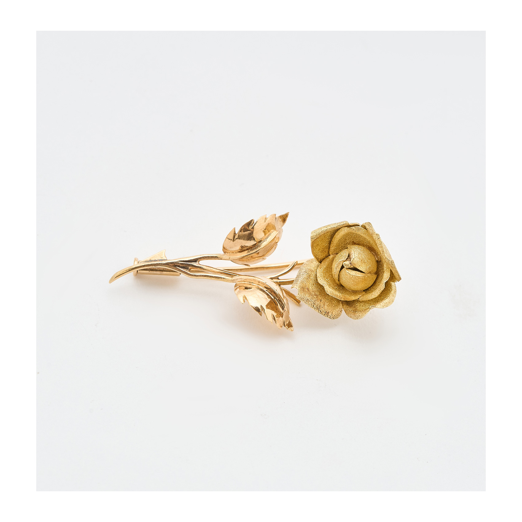 broche diseño rosa en oro mate y brillo, 5 cm.