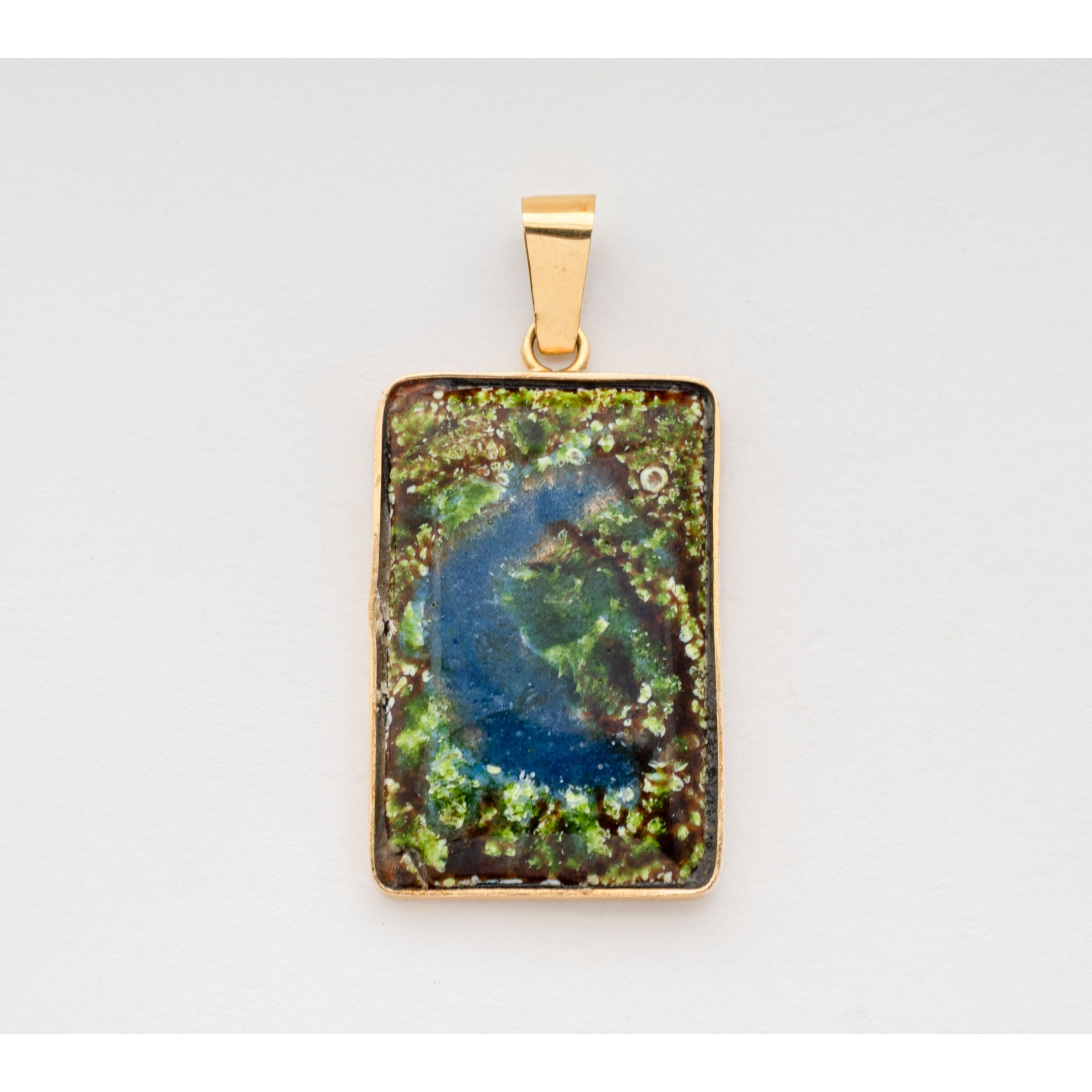 Colgante rectangular en oro y esmalte, 4,3 x 2,1 cm.