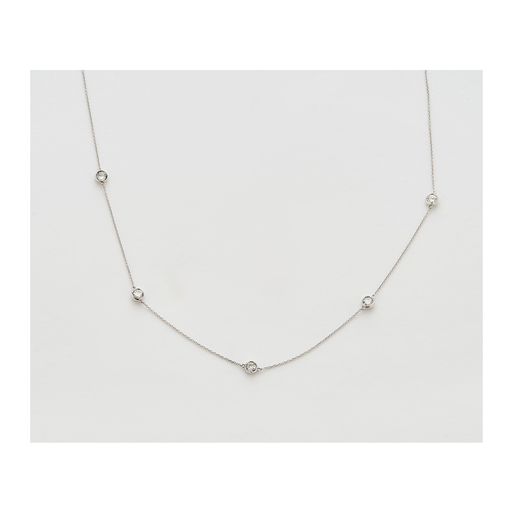 Gargantilla de cadena forjada en oro blanco con chatones de diamantes talla brillante alternados.