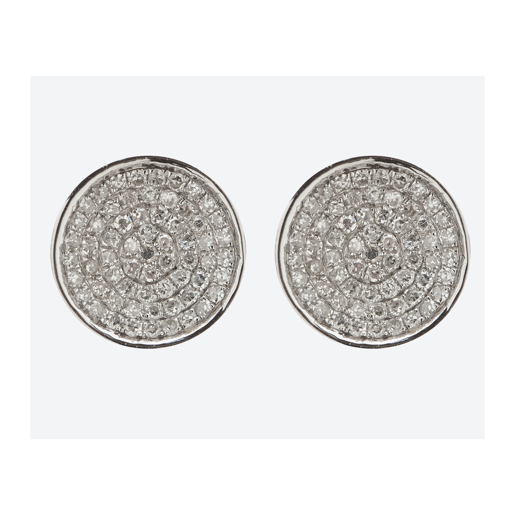Pendientes circulares en oro blanco con pavé de diamantes talla brillante.