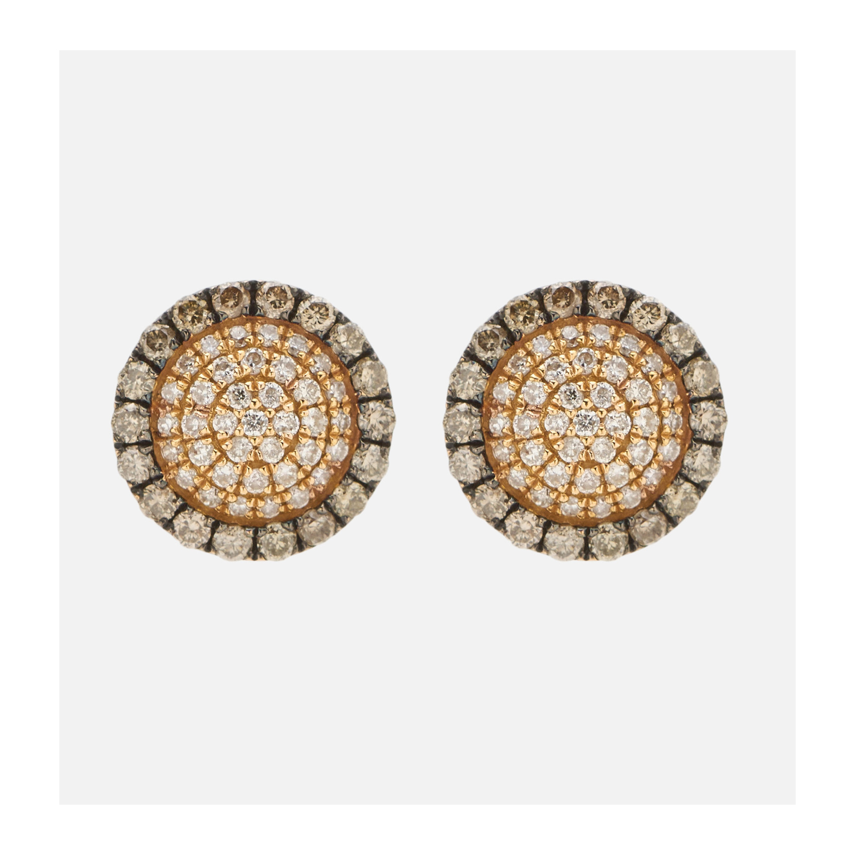 Pendientes circulares en oro rosa y pavonado con pavé de diamantes talla brillante.