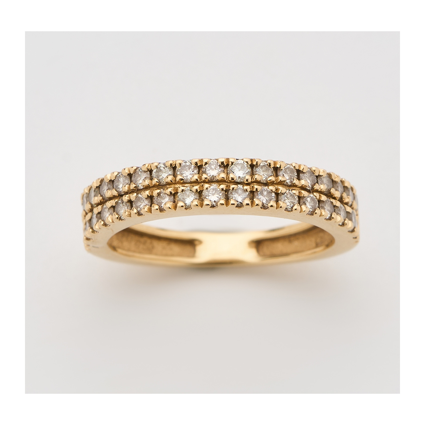 Sortija en oro con dos bandas de diamantes talla brillante engastados en garras.