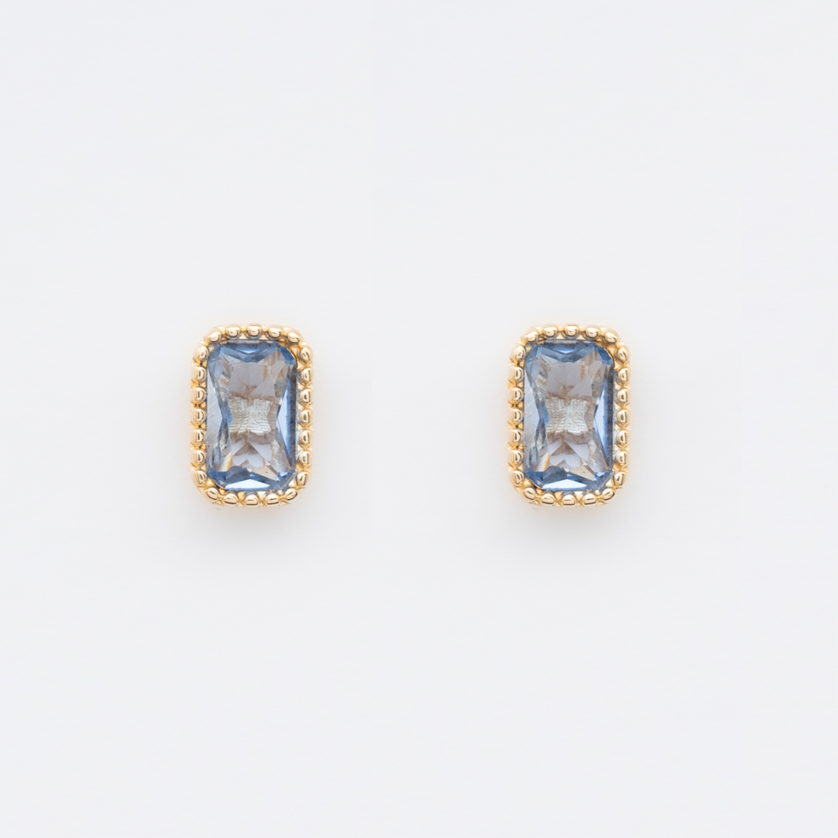 Pendientes en oro 9K con zafiro azul rectangular engastado en chatón.