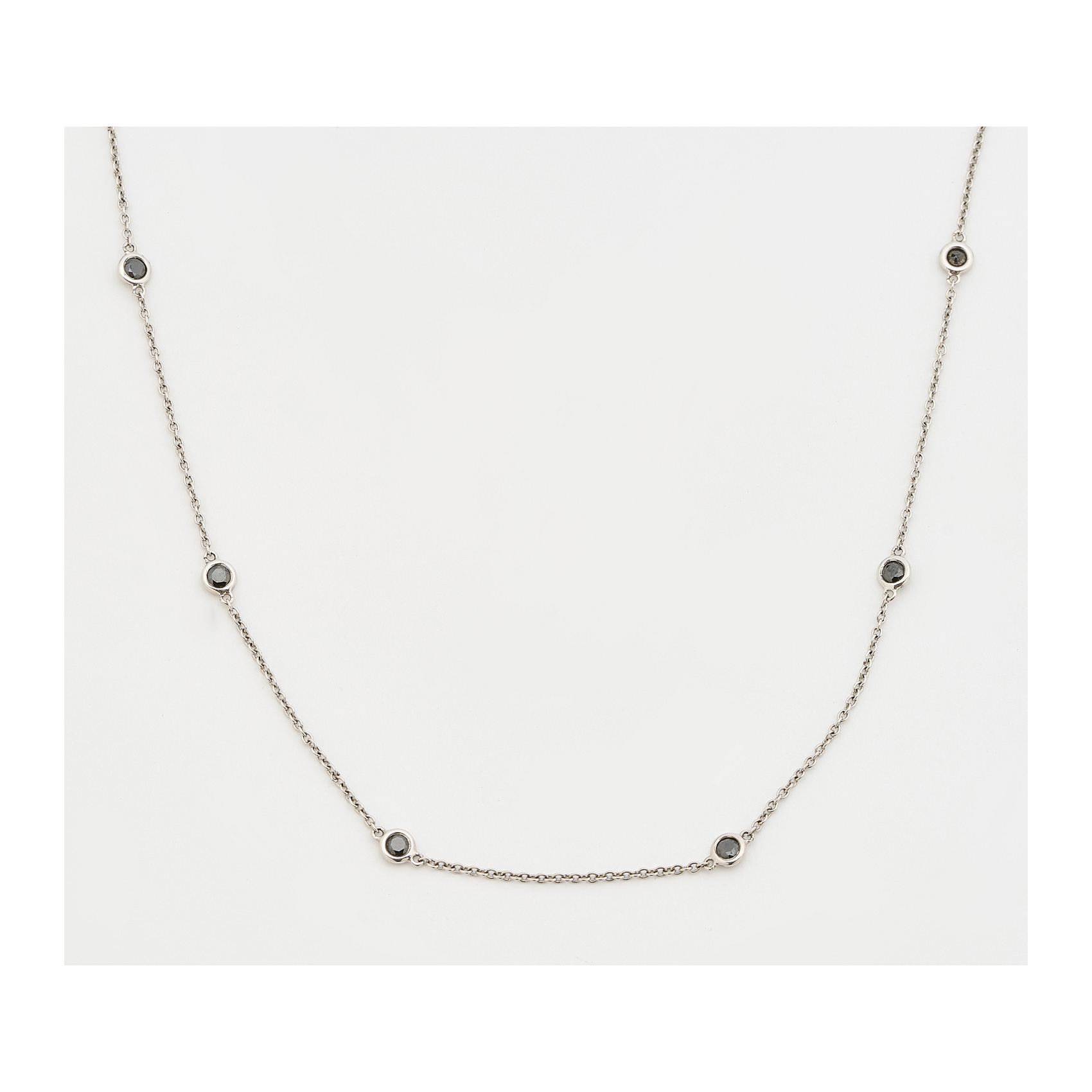 Gargantilla de cadena forjada en oro blanco con chatones de diamantes negros talla brillante alternados.