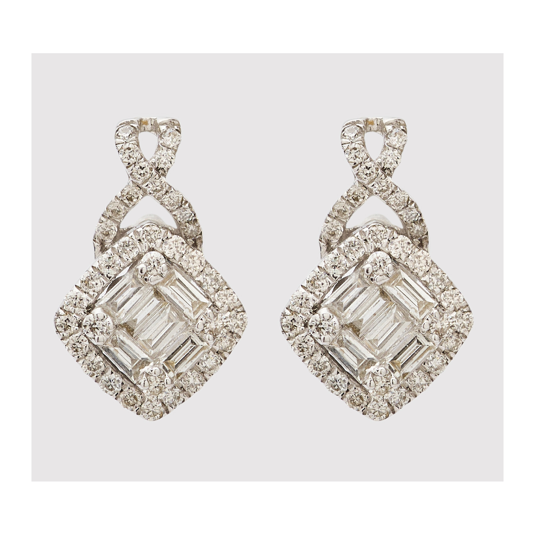 Pendientes en oro blanco con diamantes tallas brillante y baguette.