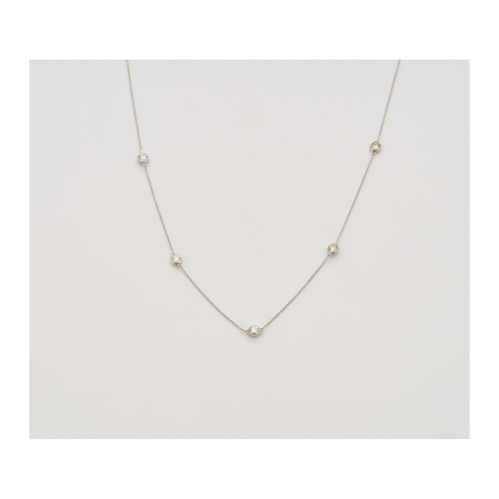 Gargantilla de cadena forjada en oro blanco con chatones de diamantes talla brillante alternados.