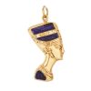 Colgante diseño Nefertiti en oro con símiles de turquesa y lapislázuli. 3 x 1,2 cm. Peso total: 2,4 gr. Estimación: 250 – 350 €.