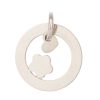 Colgante diseño círculo calado con flor y corazón en oro blanco. Diám.: 2 cm. Peso total: 4,2 gr. Estimación: 250 – 350 €.