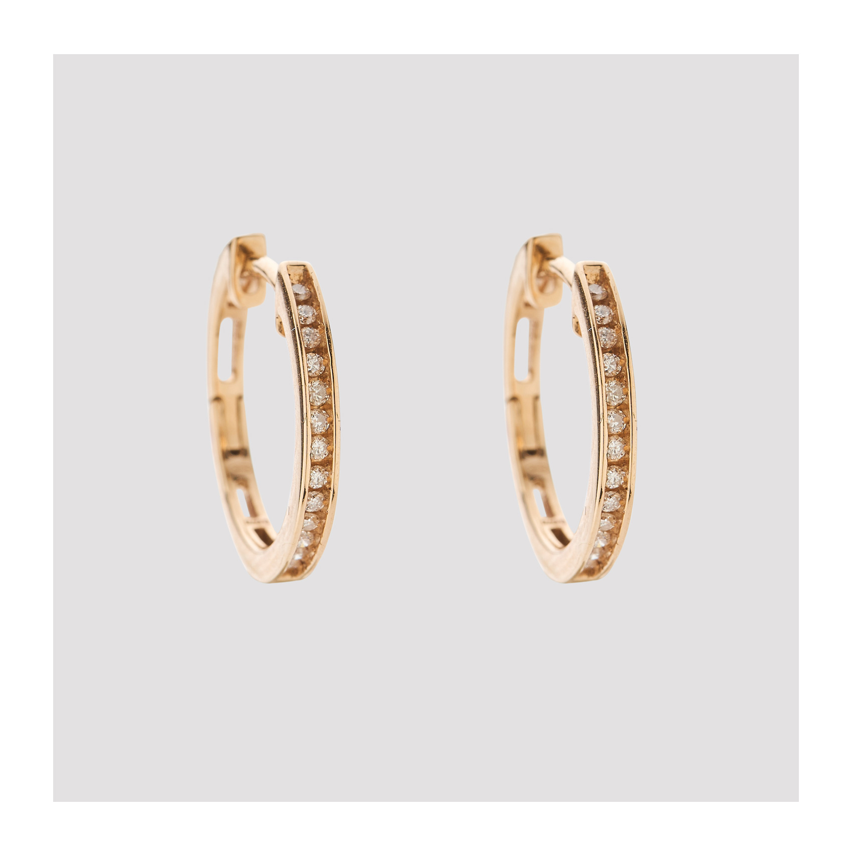 Pendientes criolla en oro rosa con frente de diamantes talla brillante.