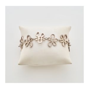 Pulsera de malla en acero con motivo central diseño flor y cierre de mosquetón en plata dorada