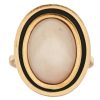 Sortija en oro y esmalte negro con cabujón de coral «piel de angel» de 15 x 11 mm. Peso total: 7,8 gr. Medida: Nº 15. Estimación: 650 – 750 €.