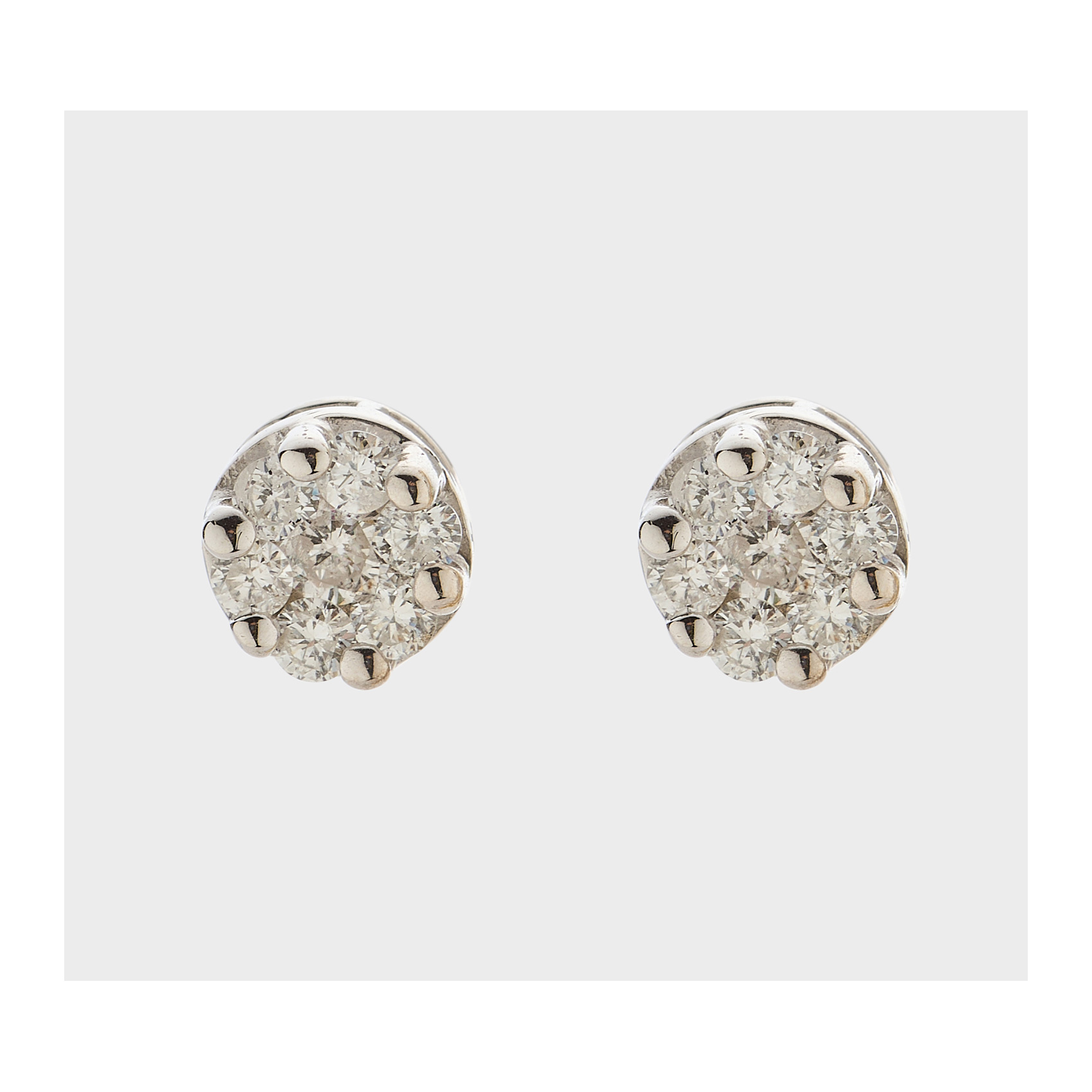 Pendientes rosetón en oro blanco con diamantes talla brillante engastados en garras.