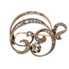 Broche modernista en oro con diamantes talla rosa 3/3 y 6/6, fles. s.XIX. 3 x 2,5 cm. Peso diamantes: 0,25 ct. aprox. Peso total: 4,8 gr. Estimación: 400 – 550 €.