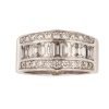 Sortija en oro blanco con centro de diamantes tallas esmeralda y brillante. Peso diamantes: 2,15 ct. aprox. Peso total: 12,5 gr. Medida: Nº 19. Estimación: 3000 – 4000 €.