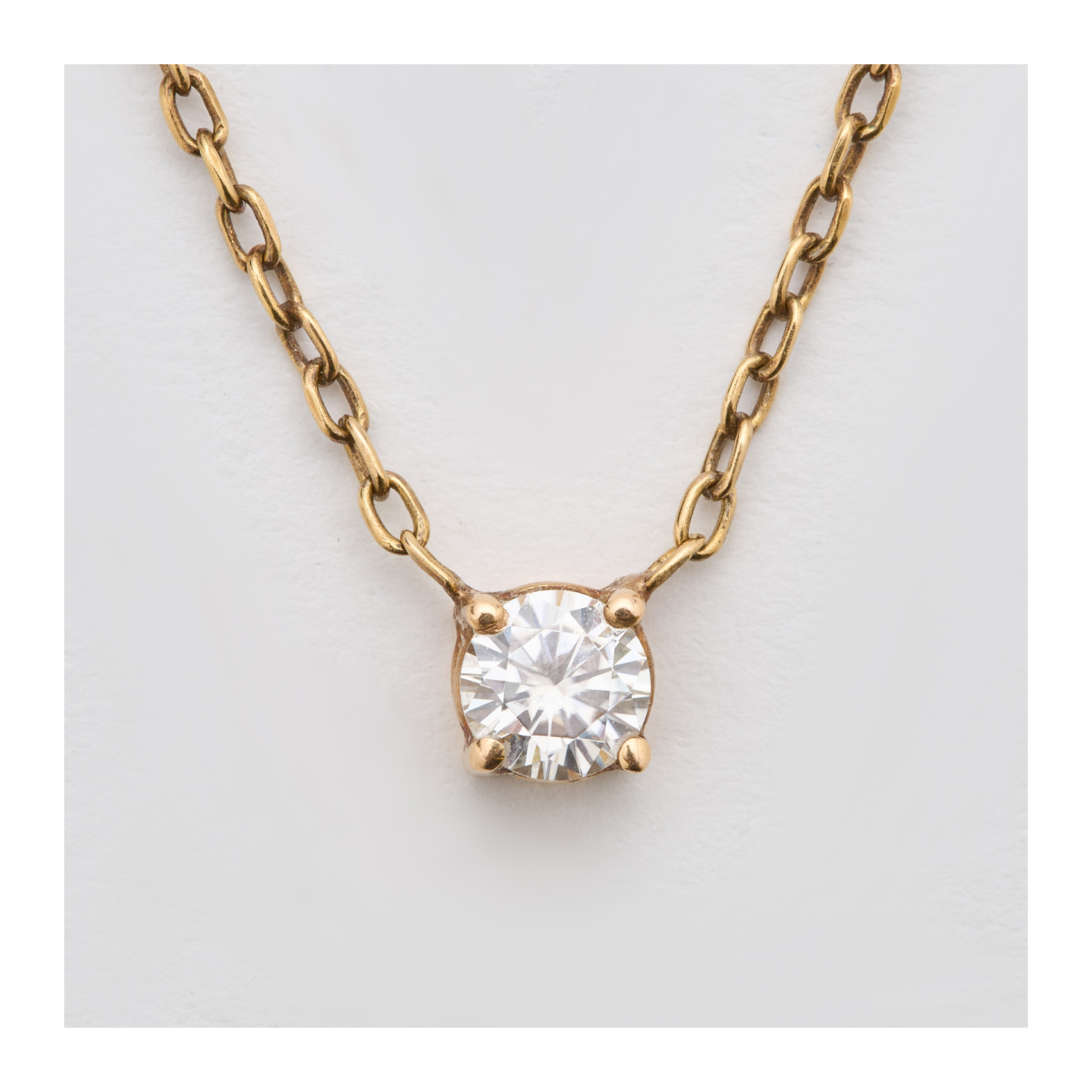Gargantilla en oro con diamante talla brillante engastado en garras.