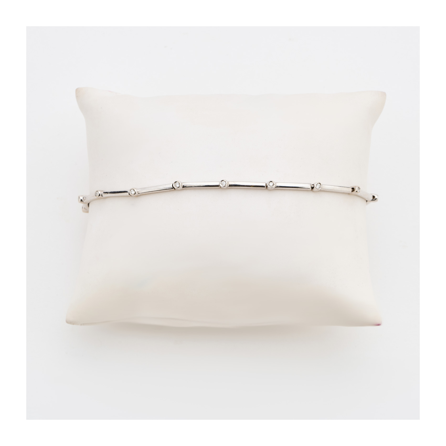 Pulsera en oro blanco con barritas y diamantes talla brillante alternados.