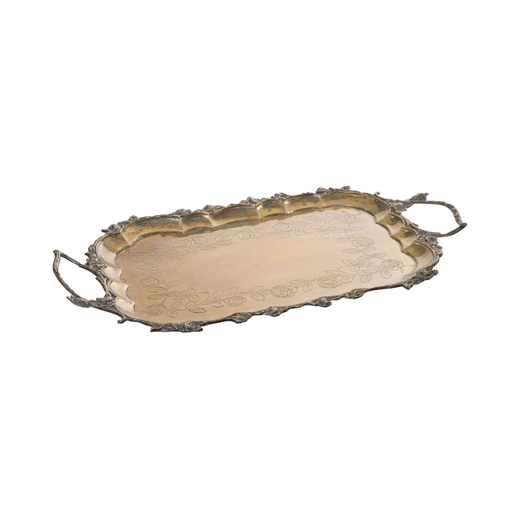 Bandeja con asas en plata española punzonada con decoración de motivos florales en relieve y cincelados en el asiento, s.XX.