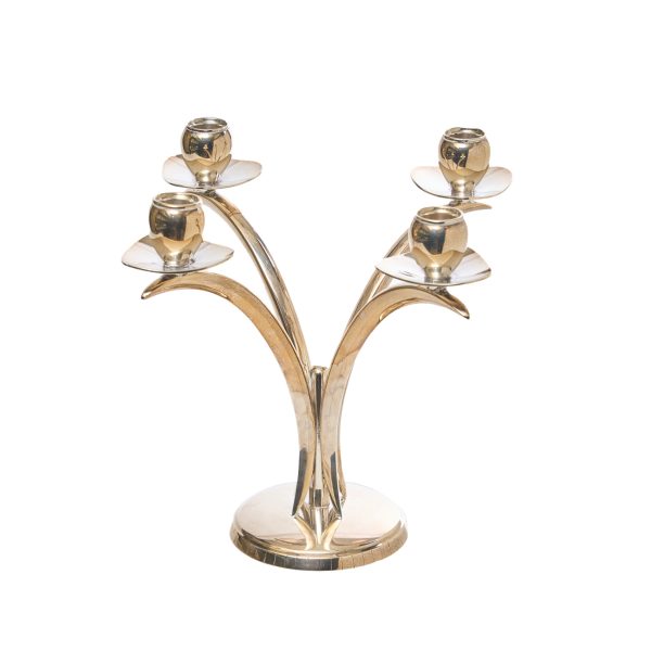 Pareja de candelabros de cuatro luces en plata española punzonada con decoración de brazos lisos, s.XX.
