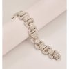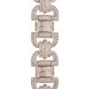 Brazalete de líneas geométricas y bombé en oro blanco con eslabones y entrepiezas de pavé de diamantes talla brillante.