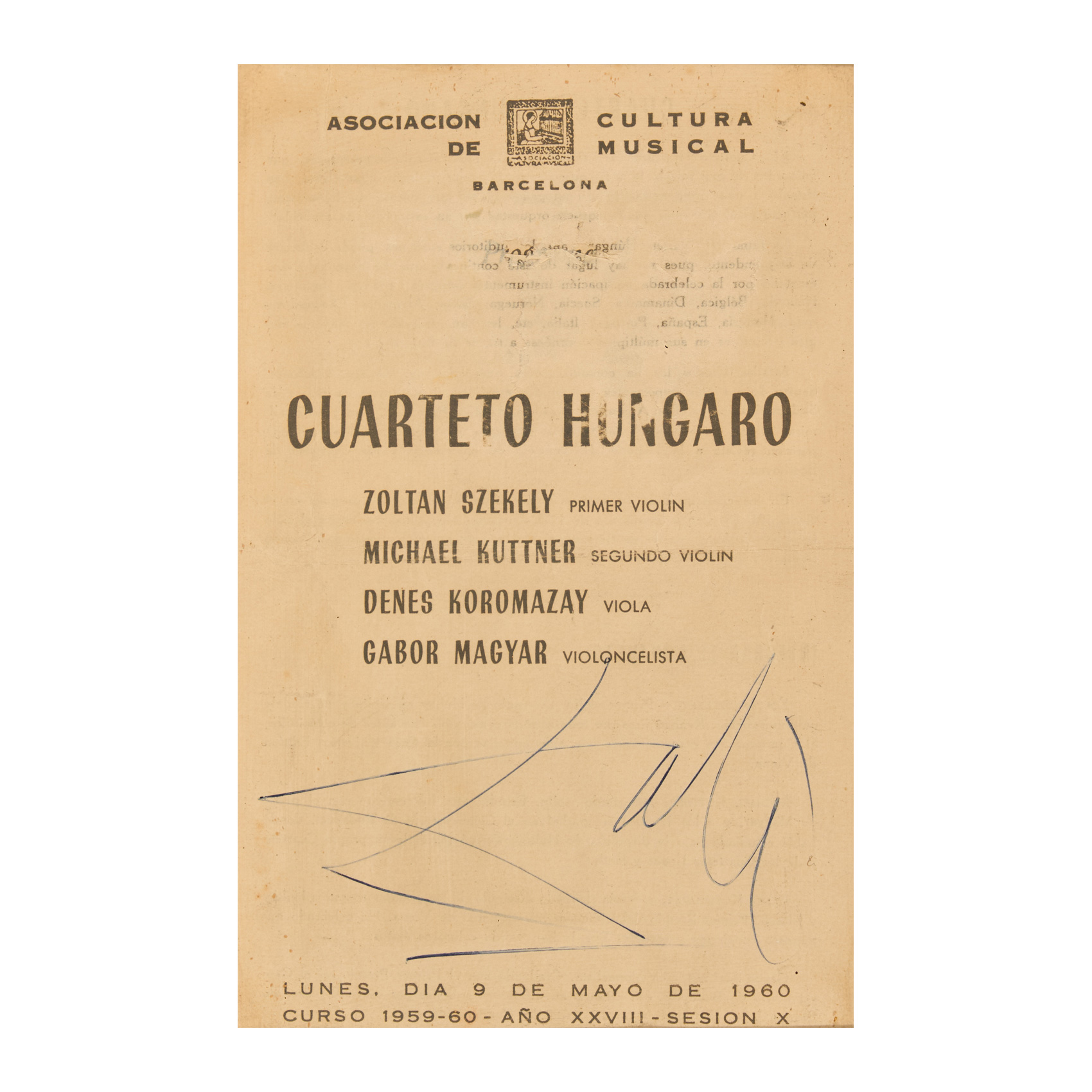 Firma de Salvador Dalí en el programa de mano de la Asociación Cultural de Música de Barcelona del 9 de mayo de 1960.
