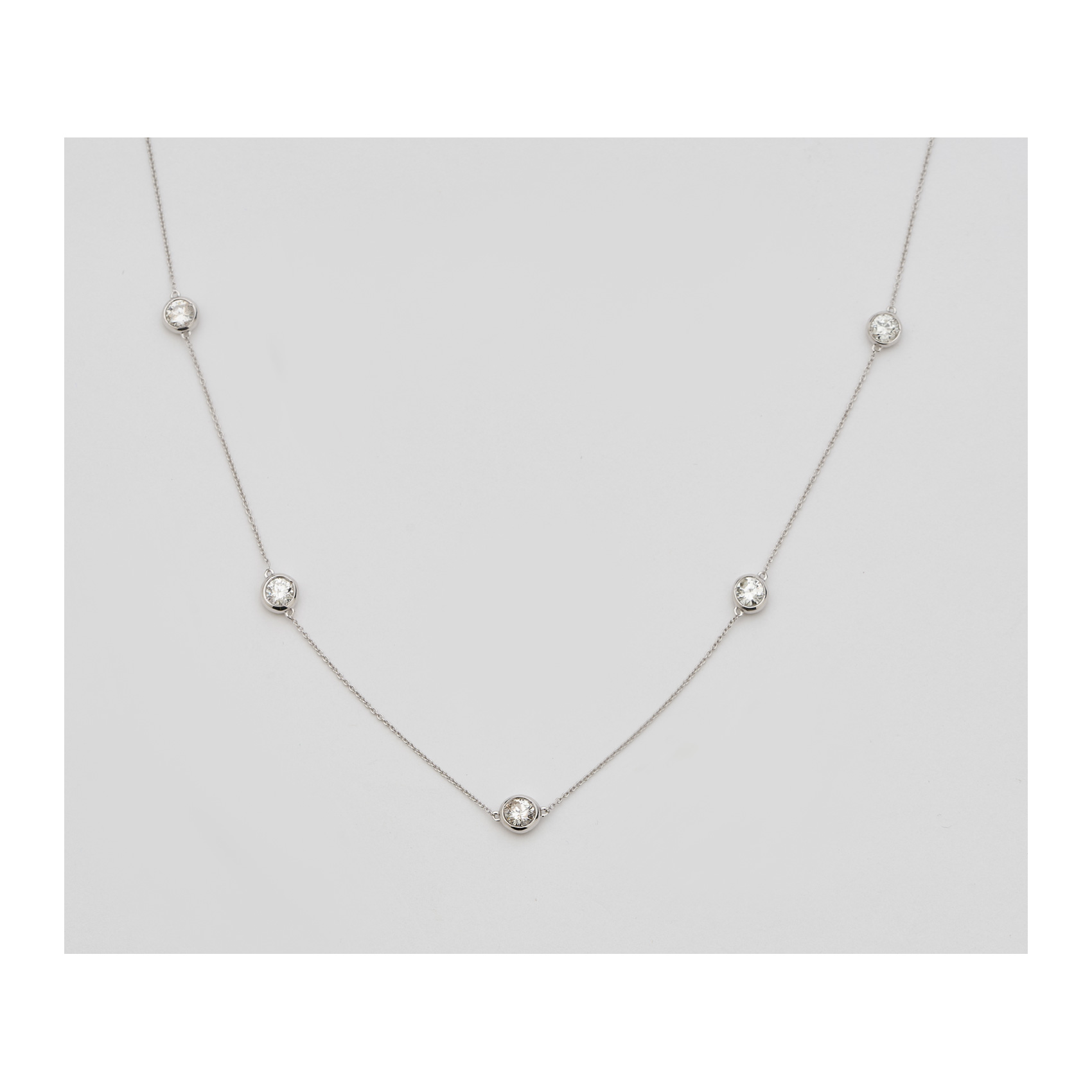 Gargantilla de cadena forjada en oro blanco con chatones de diamantes talla brillante alternados.