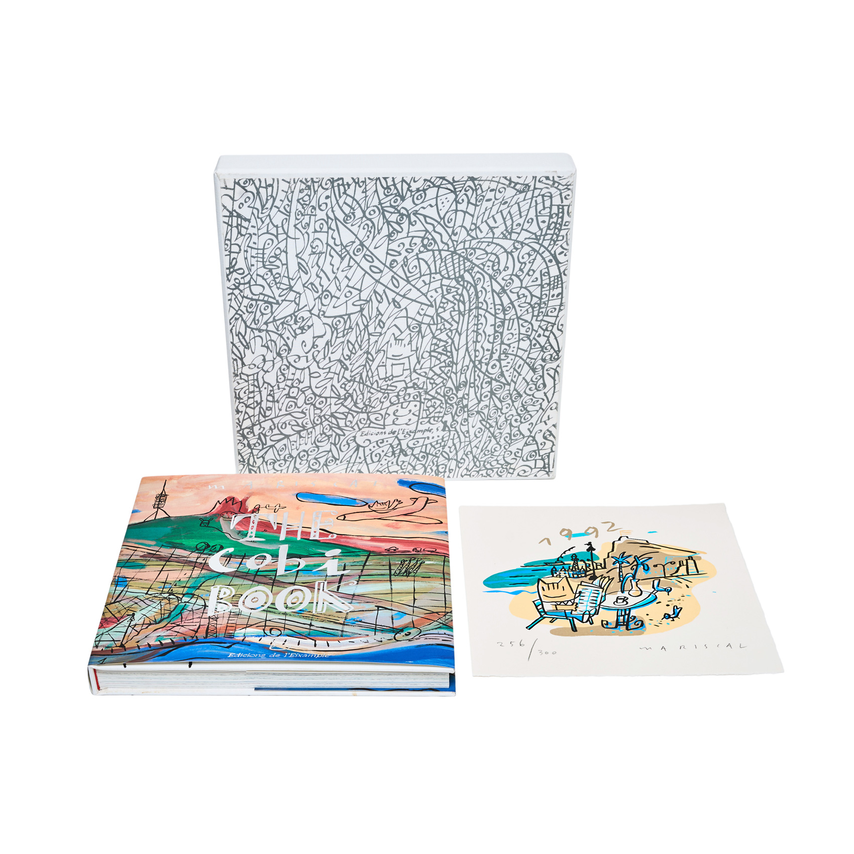 Adjunta libro y estuche con un recopilatorio de ilustraciones de Cobi. Edicions de L’Eixample S.L., 1992. Firmado y dedicado en la tercera página.