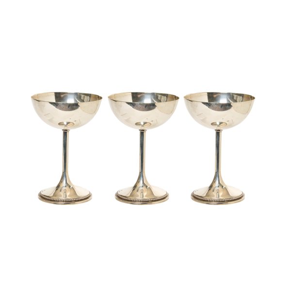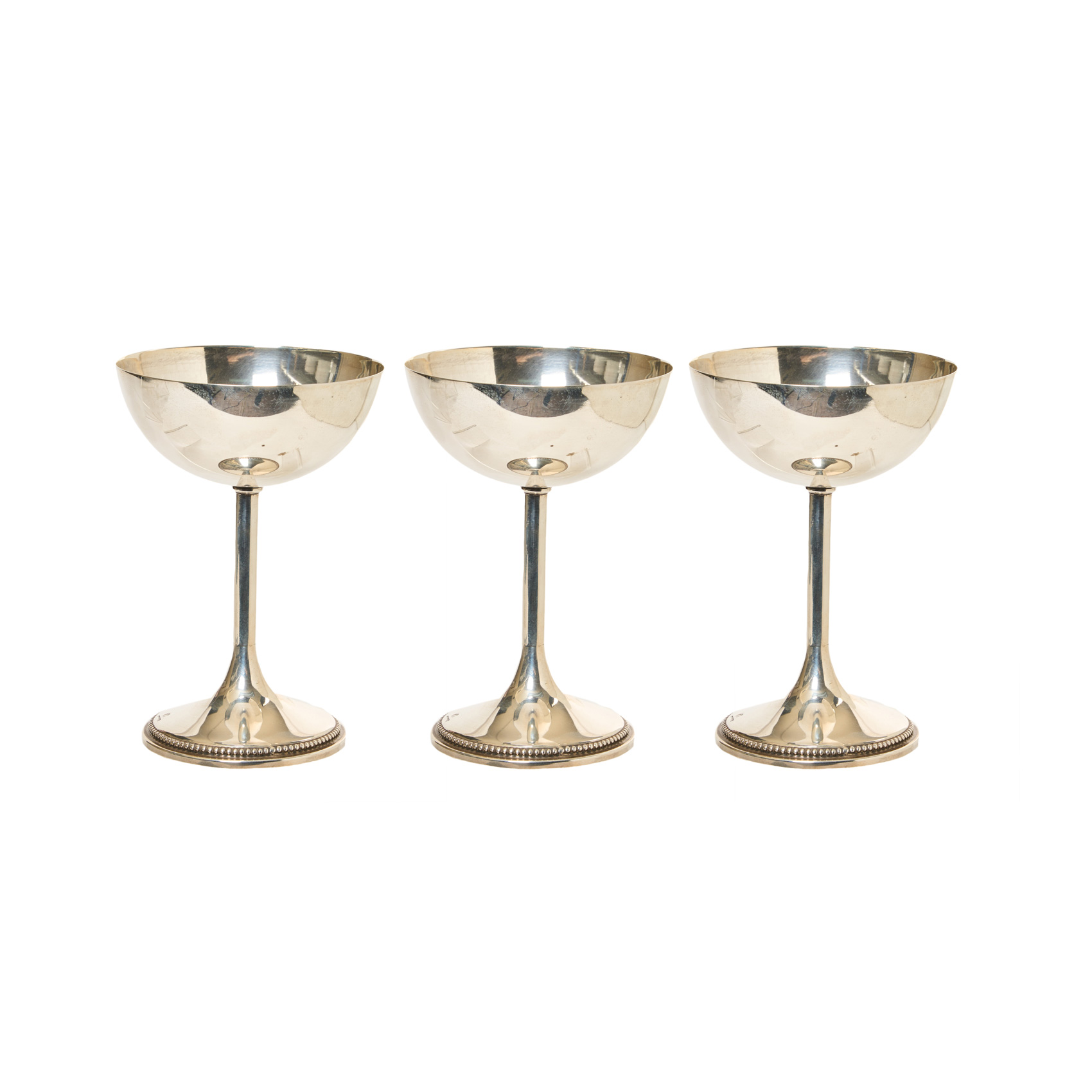 Juego de tres copas en plata española punzonada con decoración en la base de motivo perlado, s.XX.