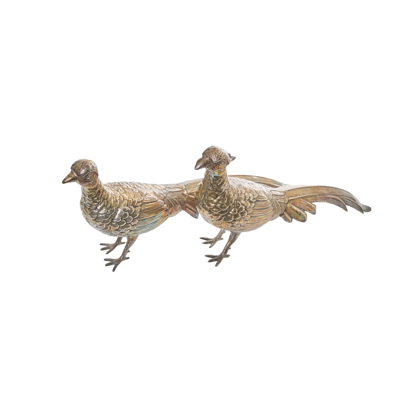 Pareja de faisanes en plata española punzonada, s.XX.