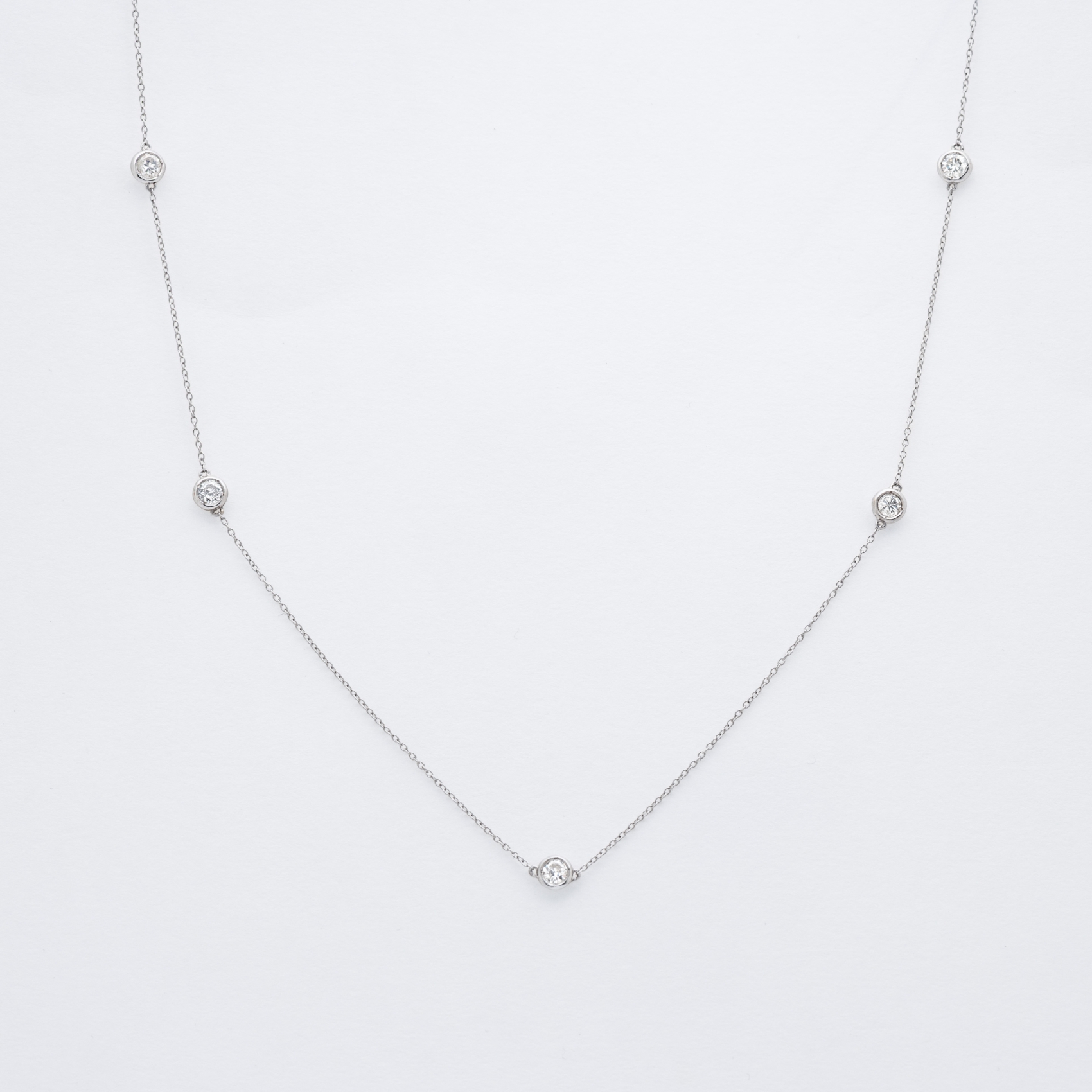 Gargantilla de cadena forjada en oro blanco con chatones de diamantes talla brillante.