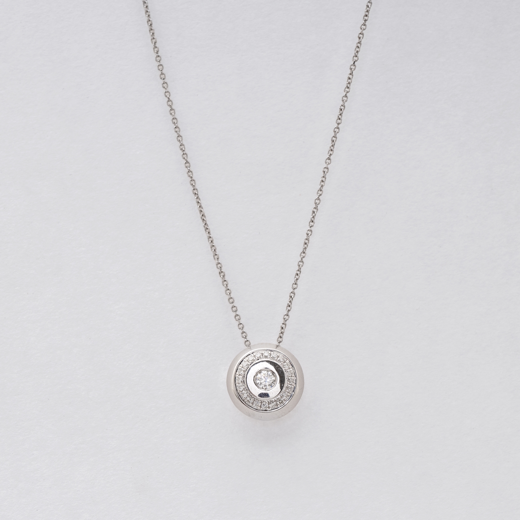 Gargantilla con motivo circular en oro blanco y diamantes talla brillanrte.