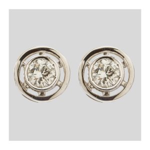 Lote de dos candelabros en plata española punzonada con decoración de líneas lisas y pequeño cabujón incrustado en piedra dura, s.XX.