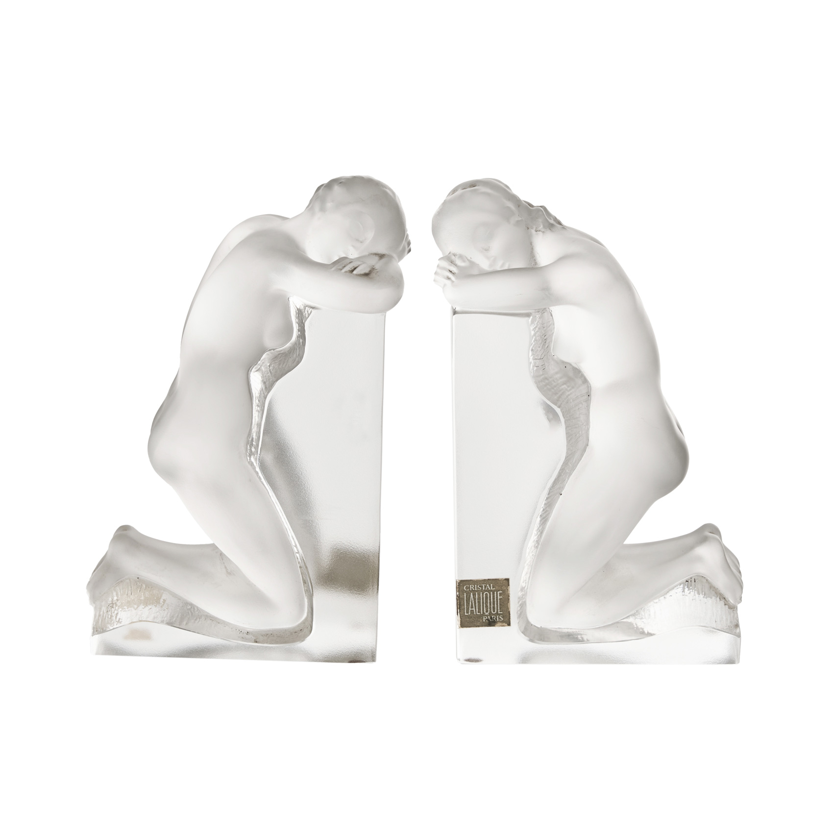 Pareja de sujetalibros en cristal francés esmerilado, c.1960-1970. Etiquetas de origen.
