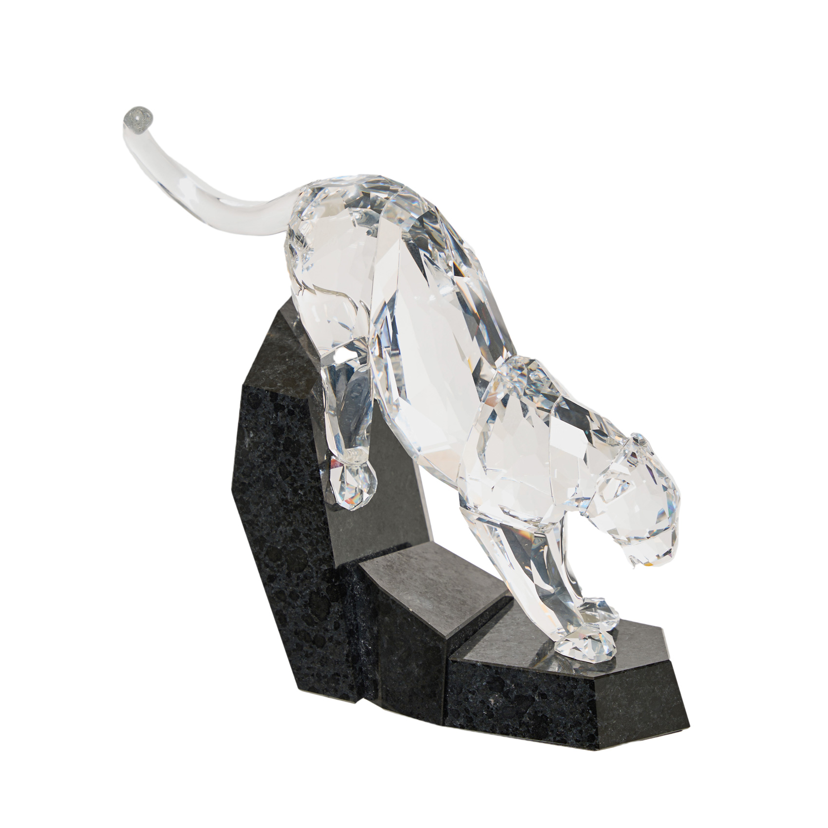 Figura en cristal tallado sobre base en granito negro. Firmada y fechada en 2007. Marca al ácido.