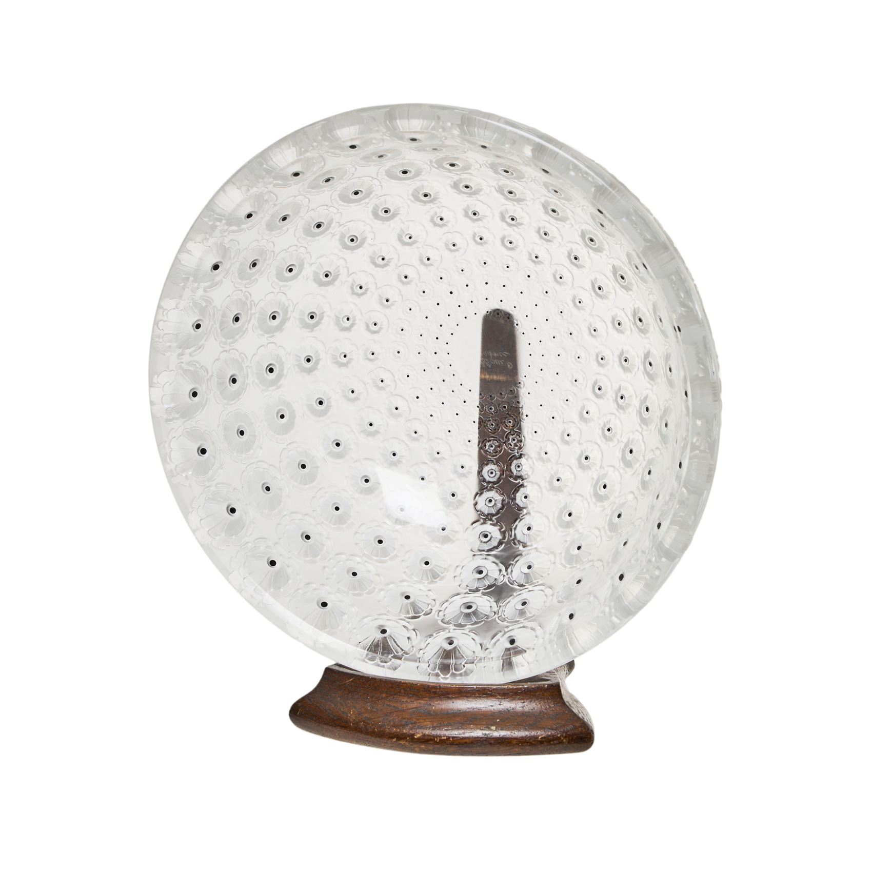 Centro en cristal esmerilado modelo «Nemours» con decoración inferior de motivos florales en relieve. Firmado al ácido en la base. Bibliografía: Reproducido en el libro «R. Lalique Cataloque Raisonné de L’Oeuvre de Verre» por Felix Marcilhac. Figura 404. Edita Les Editions de L’Amateur.