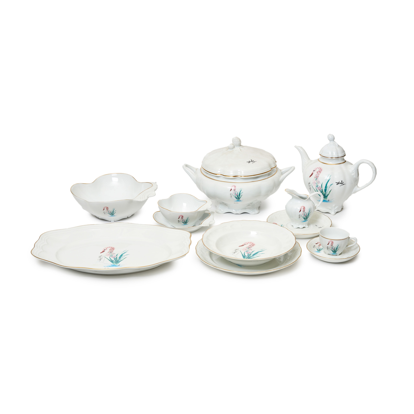Vajilla de doce servicios de la serie «Las Flores Dalinianas» diseñada en 1981. 84 piezas. Número 238 de una serie limitada de 1.000 ejemplares.