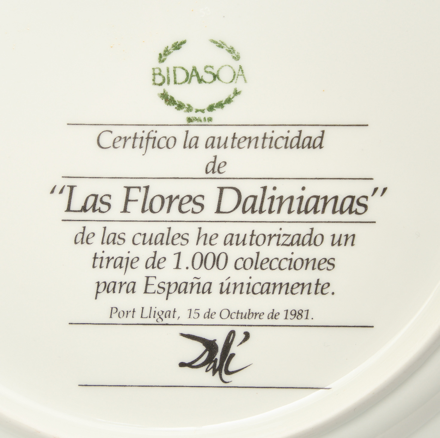 Según Salvador Dalí (Figueres, Girona, 1904-1989) para la manufactura Bidasoa (Guipúzcoa, 1936)