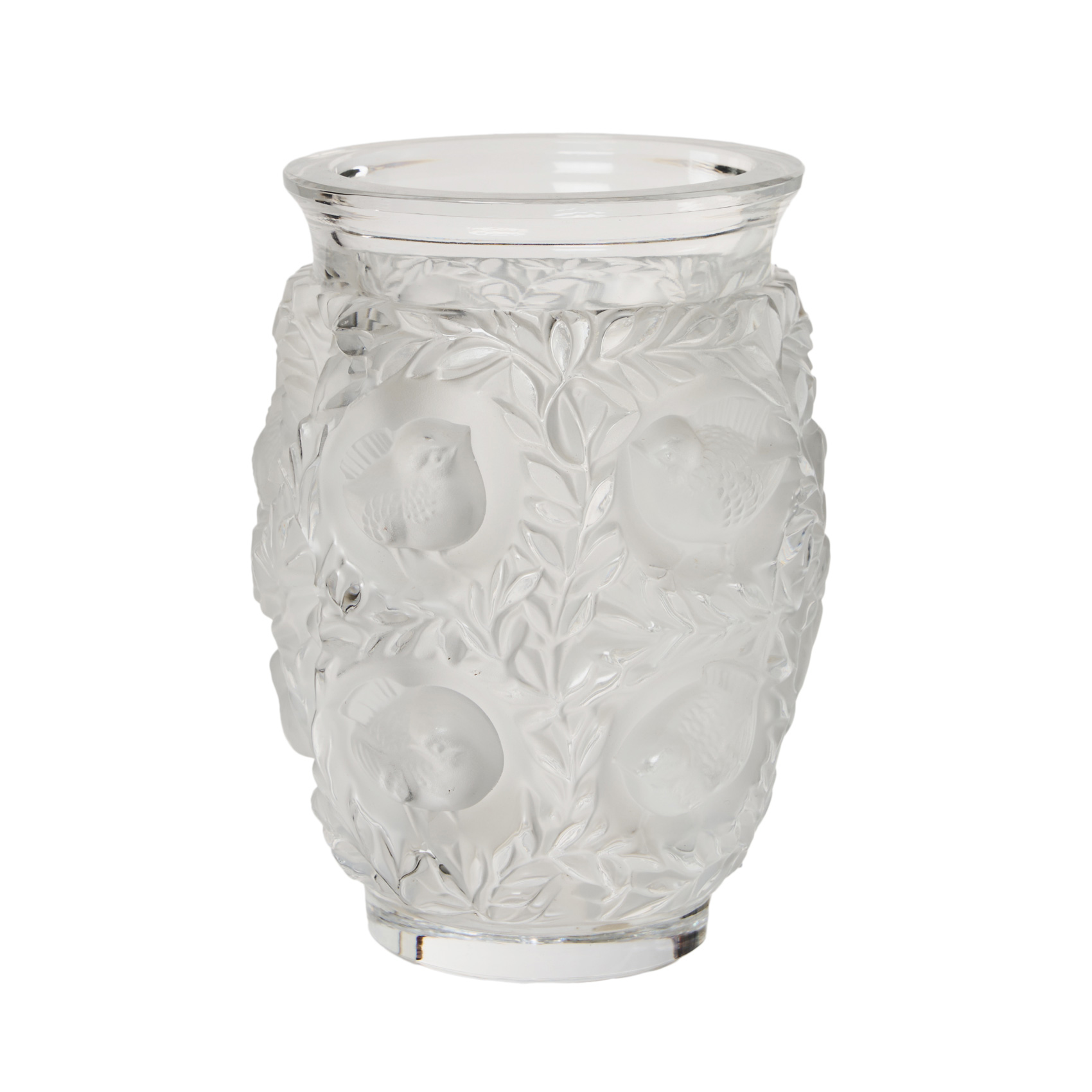Jarrón modelo «Bagatelle» en cristal esmerilado con profusa decoración de motivos vegetales y de aves. Firmado al ácido en la base.